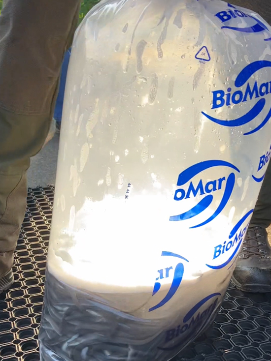 Abgepackt in sauerstoffgefüllten Transportsäcken gingen insgesamt ca. 1000 kg Aalbesatz auf die Reise in die Besatzgewässer (z.B. Lippe, Ems, Weser, Kanalsystem).